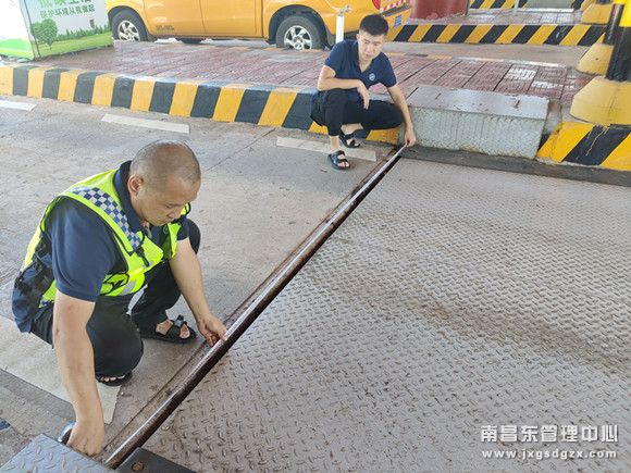 近日,樟树东收费所在例行安全检查时发现樟树东收费站的地磅缝隙因加固铁片脱落,造成地磅缝隙最宽处可达15厘米,裸露的缝隙极易引发工作人员行走以及车辆通行的安全问题。樟树东所第一时间联系丽村维护站地消除了安全隐患。