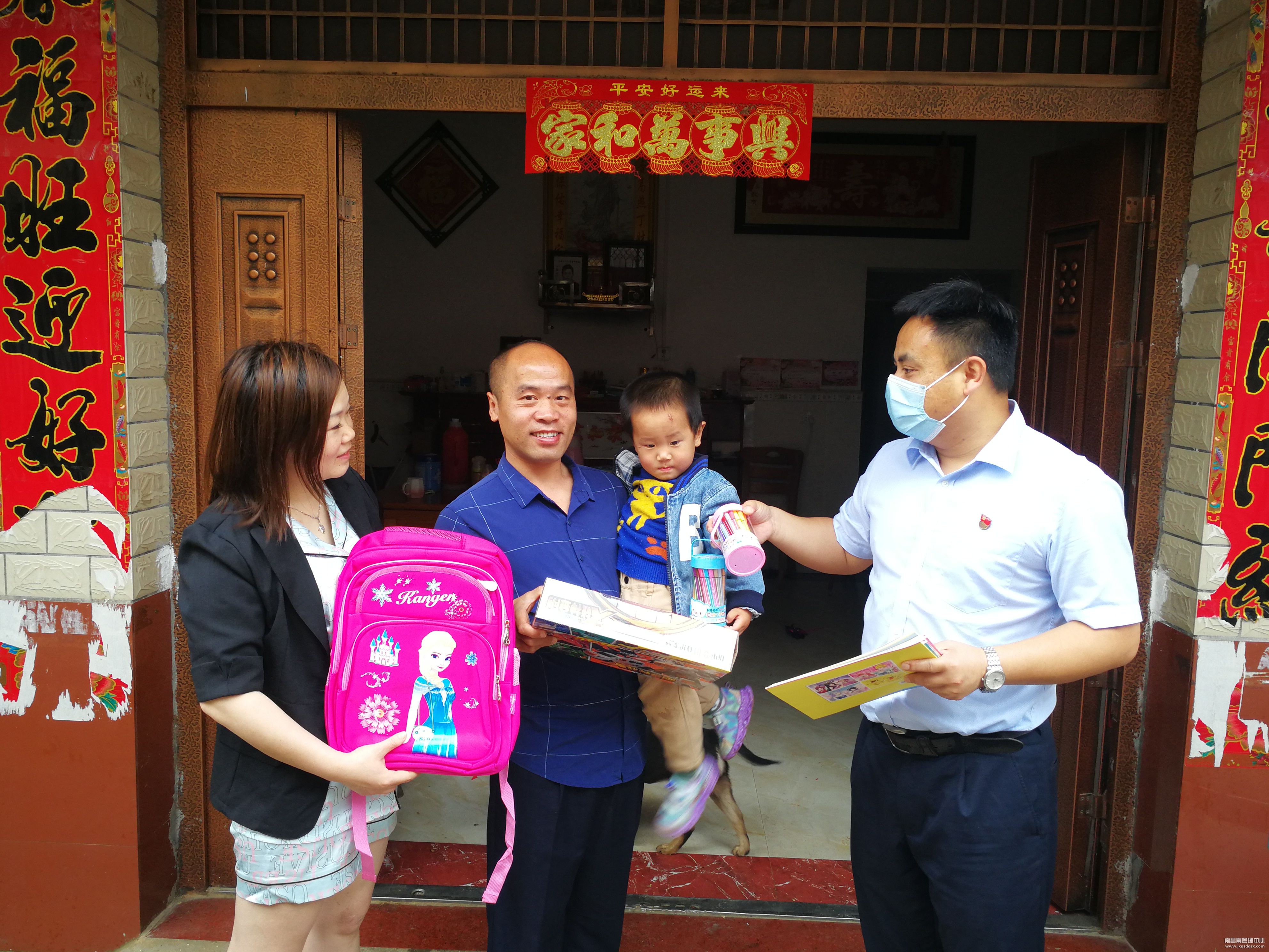 弘扬中华民族尊老爱幼传统美德,切实关心职工,“六一”国际儿童节来临之际,5月26日上午,樟树东收费所走访江西省丰城市荣塘镇天井村开展“六一”儿童节关爱活动,给该所员工熊文嘉同志的小孩送温暖。该所事先了解该同志家中两名小孩的情况和喜好,给他们带去书包、玩具等礼物。给小朋友送去温暖和关爱,送去节日的祝福,让小朋友提前感受到节日的快乐。