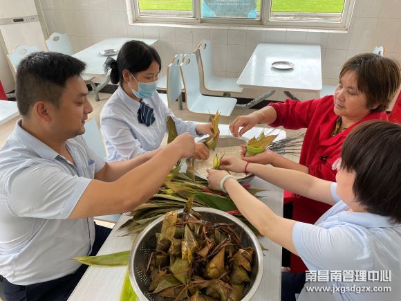 端午节来临之际,南昌南中心进贤收费站收费站举办以“浓情端午节,温馨高速人”主题的包粽子活动。