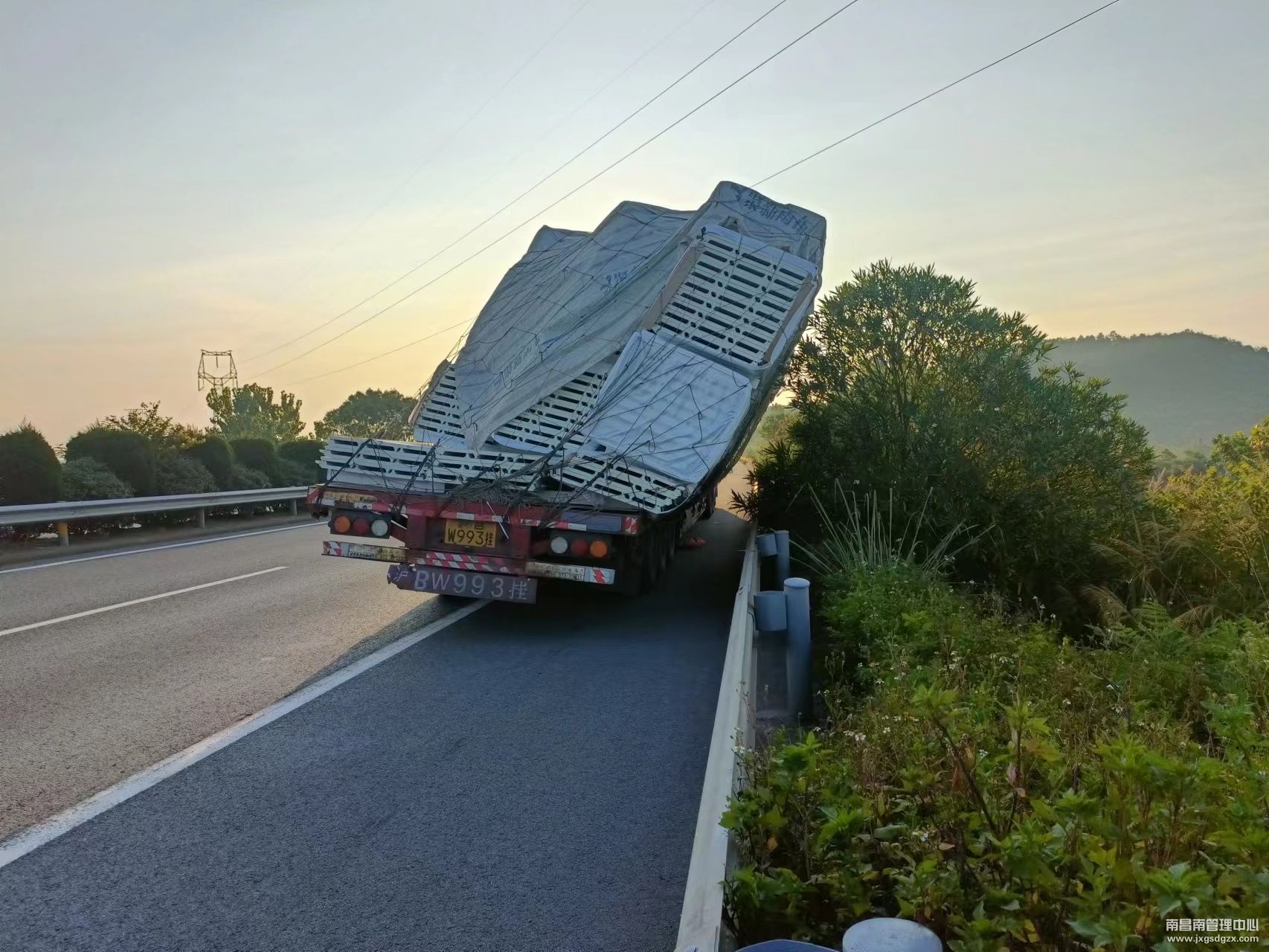 7月13日上午5点55分,一辆开往浙江的大型半挂牵引货车行驶至沪昆高速梨温路段K561公桩处时,车上货物发生倾斜,导致车辆无法正常行驶。南昌南管理中心车辆救援大队杨梅岭中队紧急出动,及时给予帮助,有效保障高速公路通行安全。