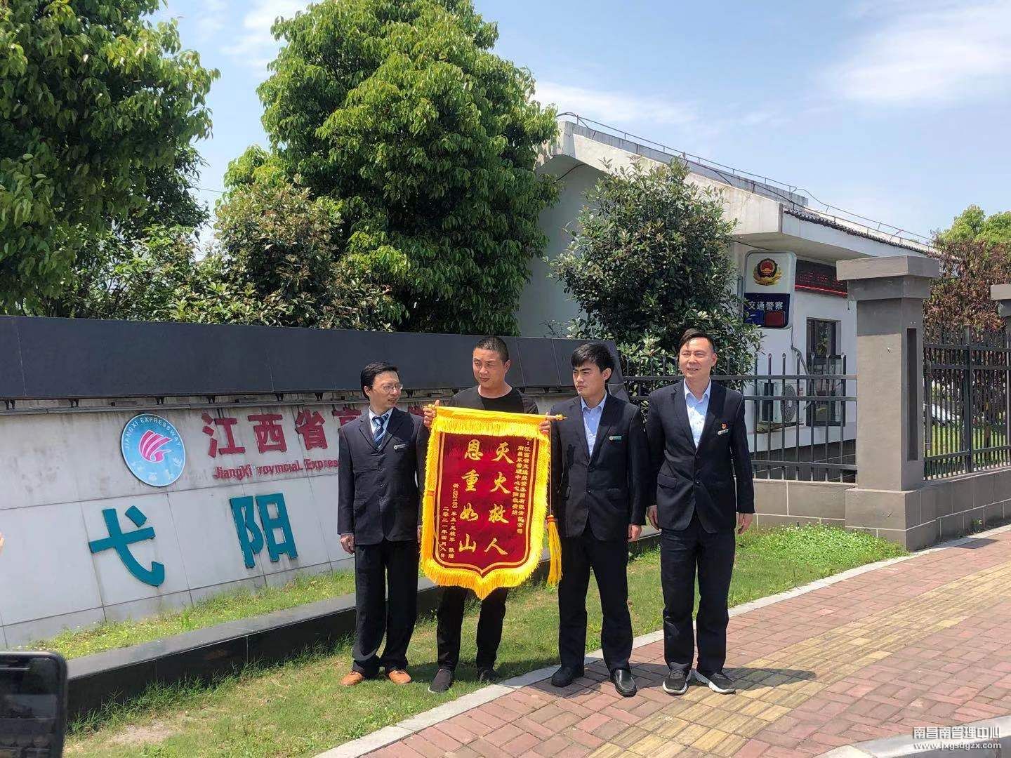 原来,2021年3月21日凌晨,一辆浙籍的半挂货车在通过弋阳收费站时,右后轮胎突然起火,当班班长吴志华发现情况后,立即冲出岗亭,指挥示意司机驶出车道,同时拿起灭火器对着火部位进行灭火,经过15分钟的不懈努力,最终成功帮司机挽回了200余万的货物。