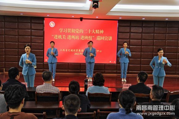 11月28日,一首节奏明快的快板书在南昌南管理中心打响,吸引了干部职工的好奇眼光。该中心党委组织青年宣讲团,以排演曲艺节目的形式,将党的二十大精神传达到基层一线站所,机关和信息分中心是宣讲队进行宣传的第一站。中心在家领导、机关和信息分中心的党员干部职工观摩了宣讲。