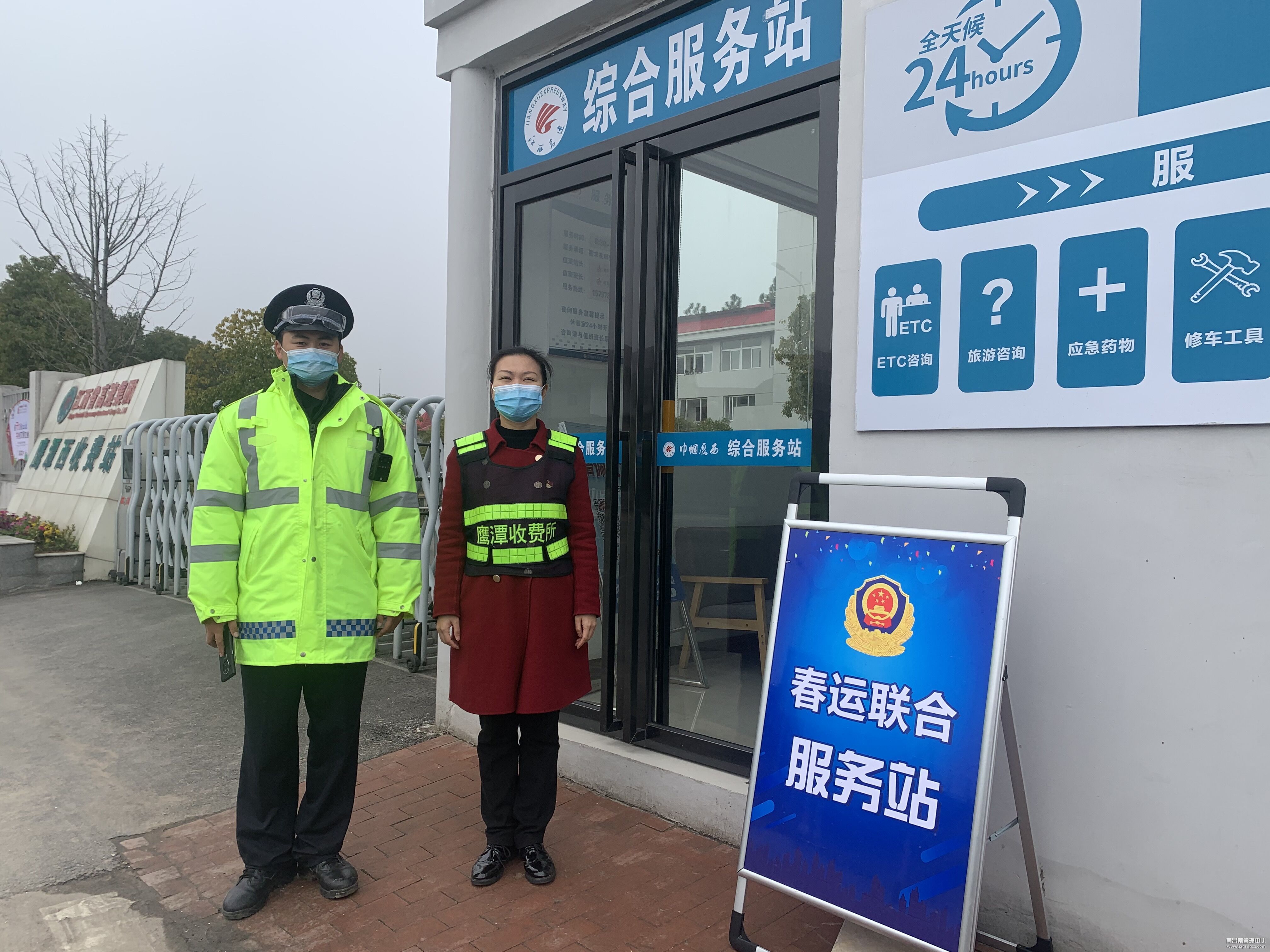 2022年春运工作的号角已经吹响,为保障过往司乘人员平安返乡、欢度春节,近日,南昌南管理中心鹰潭西收费站联合高速交警五支队一大队在综合服务站驻点,合力开展春运保畅工作。