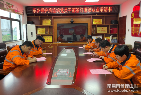 组织一般管理人员及以上干部和支部全体党员签订《南昌南管理中心东乡养护所廉洁从业承诺书》44份。党员干部在承诺书上签字并作出庄严承诺,将切实履行廉洁从业承诺,筑牢防线,守住底线,将“纸上的责任”转变成“行动中的责任”,将承诺内化于心,外化于行,坚决筑牢廉洁从业防火墙。