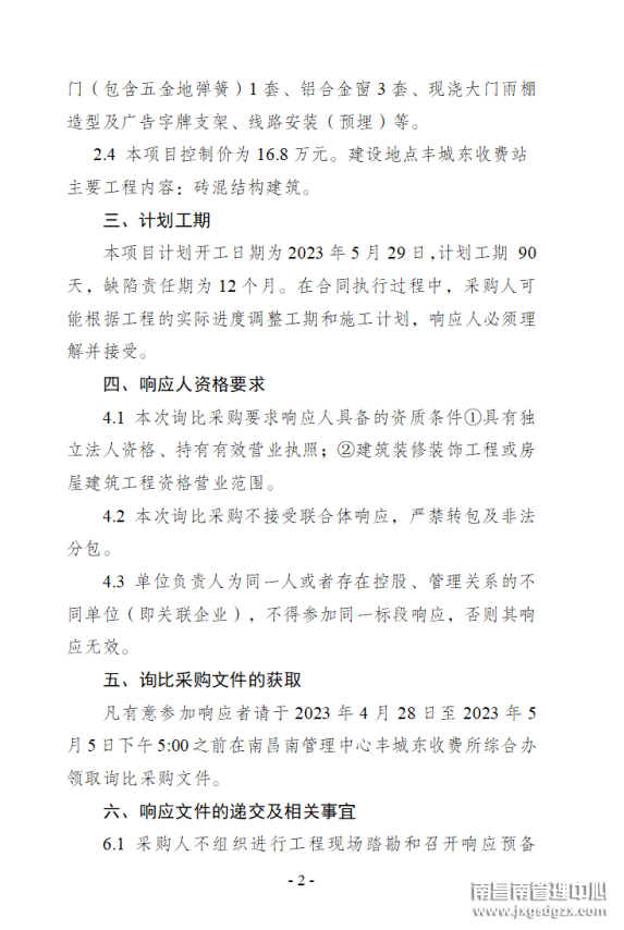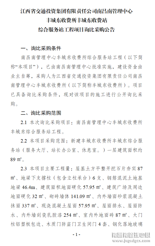 江西交通投资集团有限责任公司南昌南管理中心丰城东收费所丰城东收费站综合服务站建设工程项目询价公告