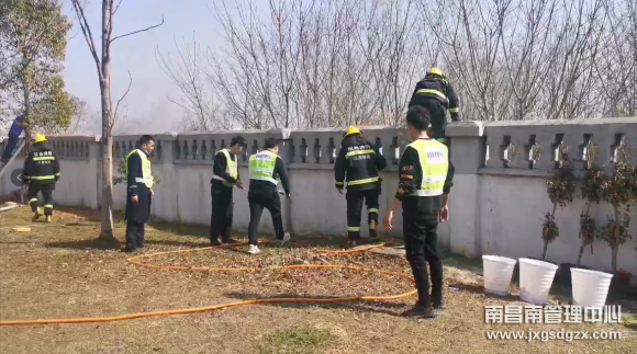 2月26日中午1点20分,南昌南管理中心南昌收费站班长当班期间,发现单位院墙外面冒起滚滚浓烟,且有明火燃烧,该班长立即前往事发地点查看火势并用对讲机报告值班站长,并组织同事增援。