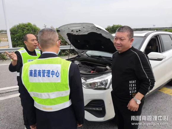 4月10日,南昌南管理中心丰城东收费站工作人员在广场巡查时,发现一辆小客车在收费车道前打双闪停滞不前,司机急的手足无措。