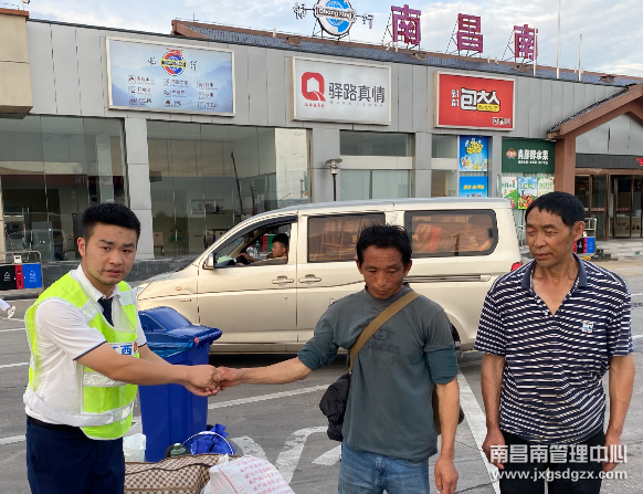 当时天气炎热,两人早已汗流浃背,收费员立马安抚两人的焦急情绪并暖心的送上矿泉水,同时迅速将这一情况汇报给了值班站长,当即决定派车将两人送至南昌南服务区,最终在保证安全的前提下于六点前将两人送至南昌南服务区乘车。
