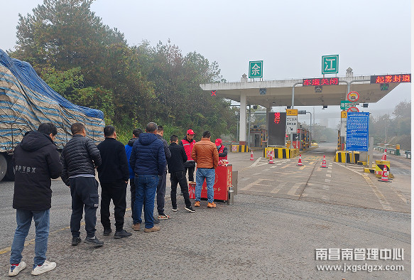 清晨时分,大雾笼罩,能见度低,余江收费站入口实行临时交通管制。该站立即启动恶劣天气应急保畅预案,组织志愿者现场指挥疏导车辆有序停靠,耐心解释封路原因,安抚司机情绪,提醒司乘人员随时关注天气变化和路况信息。同时,精心为排队等候的司乘送上热气腾腾的面条、稀饭、方便面等早餐。
