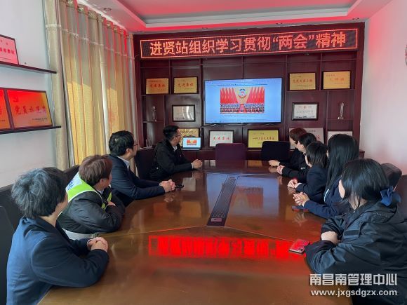 近日,南昌南管理中心进贤收费站认真学习贯彻落实“两会”精神,迅速把全体员工的思想统一到“两会”精神上来。
