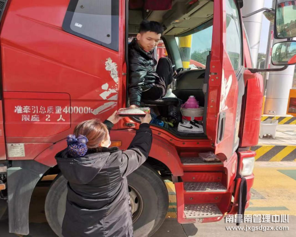 凌晨4点左右,接高速交警及信息分中心通知,因大雾天气,进贤站封闭所有入口车道,陆陆续续,收费外广场滞留了大批车辆,车上司乘焦躁不安。该站工作人员及时行动,紧急启动应急预案,工作人员有的手里拿着纸杯,有的送上简餐,有的手里提着暖瓶,将一杯杯热水倒入司乘人员的杯中。