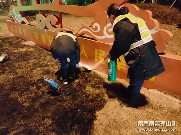 敏锐的班长立即感觉事情不对劲便上前查看。在发现草丛起火之后,该班长立即组织人员带上灭火器进行灭火,在经过5分钟的紧急处置,成功将火势熄灭。