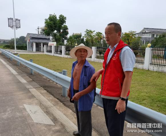 10月4日12时许,南昌南管理中心罗湖收费站当班班长发现一老人逆行上高速走向连接线,全然不顾身边飞驰的车流,十分危险。