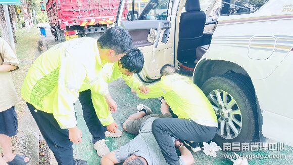 7月19日下午3时,南昌南管理中心东乡养护所工作人员在东乡服务区发现一名男子趴倒在地面,旁边站着面露焦急之色的家属。