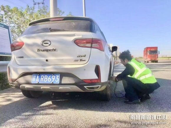 南昌南收费站:为故障车辆充气 暖心帮助司乘