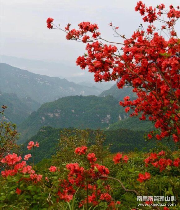 远处,红红火火的花朵连成片,蔚为壮观;近处,一枝枝、一簇簇灿烂的花朵缀满枝头。铺山盖岭的杜鹃花,吐芳蓓蕾、姹紫嫣红,与山上的野花争相斗艳。