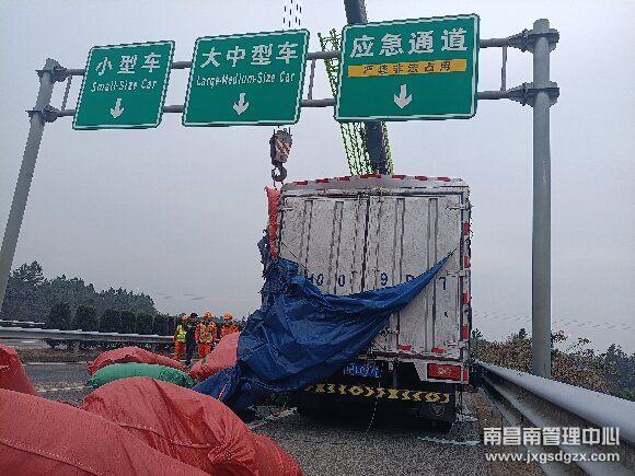 1月26日,春运这天,南昌南管理中心南昌南车辆救援中队化身“搬运工”,将高速公路路面上散落9吨货物全部清理完毕,排除了道路安全隐患,有力保障了道路安全畅通。