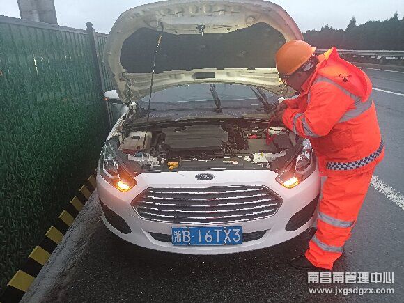 当天早上7时,南昌南车流救援大队鹰潭中队弋阳收费站驻点人员在前往沪昆高速往南昌方向K585救援途中,发现一辆小轿车停往南昌方向K582公桩处的应急车道上,救援员见状,便立即上前询问情况,经了解,小车车主徐师傅是从浙江回贵州,由于长时间驾驶有些疲劳,想让朋友驾驶,便临时将车停在应急车道换人,没想到车辆熄火了便无法启动了,猜测是电瓶亏电。