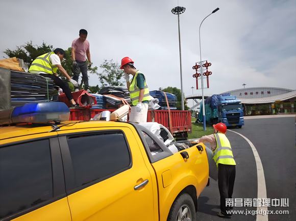 8月10日,南昌南管理中心东乡养护所杨梅岭养护站技术人员在巡逻中快速处置一起货车货物散落多车道事故,及时消除安全隐患,保障了高速公路畅通。