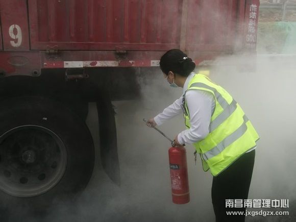 发现险情后,鹰潭西收费站立即启动应急预案。工作人员高效协同作战,收费班长紧急引导车辆停至收费广场空旷区域内;一组人快速疏散后方车辆,设置警戒区域;另一组人拿起车道旁的手提式干粉灭火器奔向货车,对准火焰根部持续喷射。眼见火势未完全压制,迅速调用推车式干粉灭火器,在众人配合默契,仅用10分钟便将明火彻底扑灭。