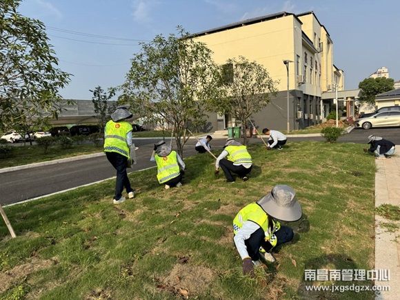 大家干劲十足,分工协作,拔草、搬运、打扫、清理,体验着劳动乐趣,脸上洋溢着笑容,让庭院的草皮焕发新的生机。